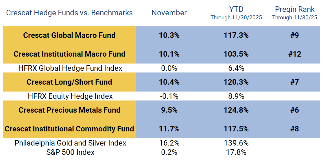 Crescat Funds: November and YTD Performance Through 11/30/2025