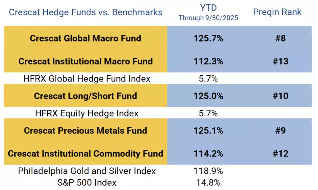 Crescat’s year-to-date performance through September across all our funds reflects the strength of our investment themes and the conviction behind them.