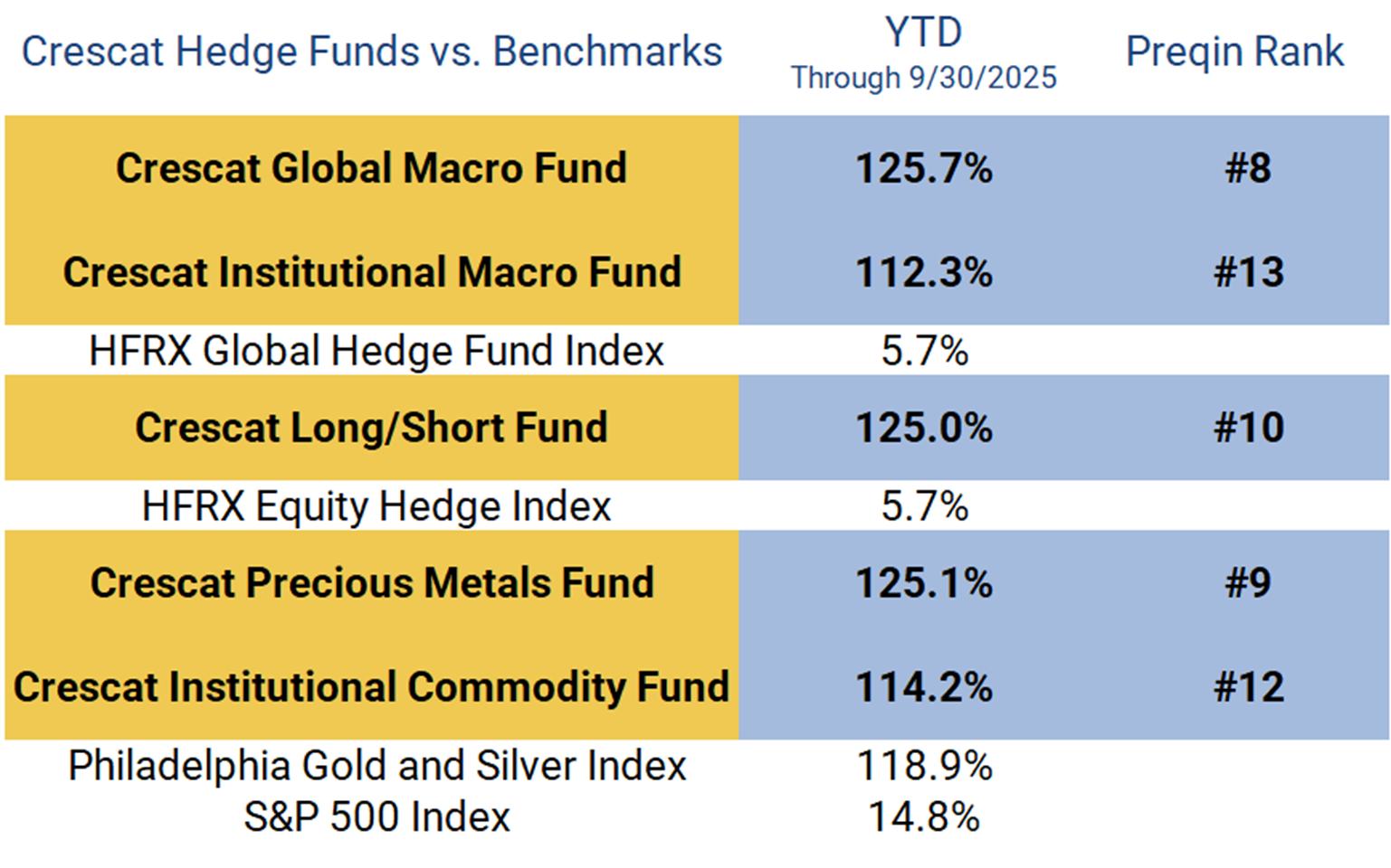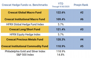 Crescat’s year-to-date performance through September across all our funds reflects the strength of our investment themes and the conviction behind them.