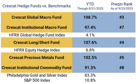 Read More »»Crescat is having an outstanding year. All 5 of our funds rank in the top 10 among 1,151 hedge funds in the Preqin database for 2025 year-to-date…